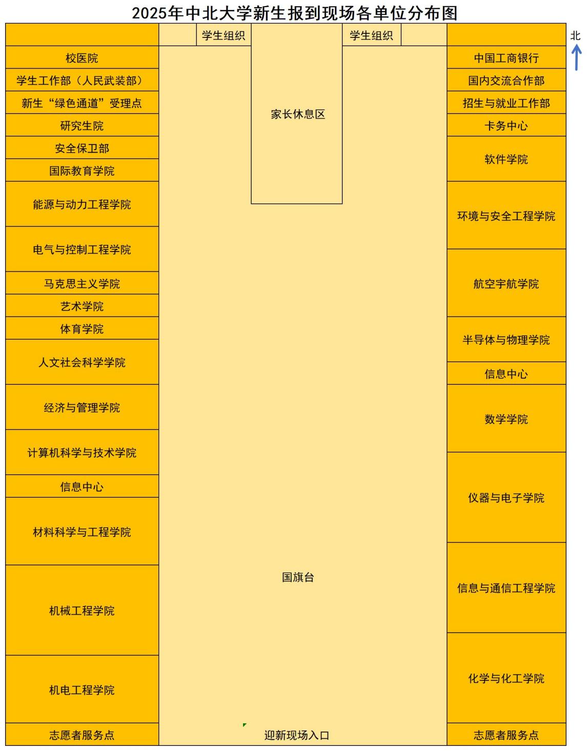 (1)各位新生出站后,在出站口找到“中北大学2025级新生接待点”,按照志愿者安排有序上车,乘坐“迎新专用车”直达校园报到现场。